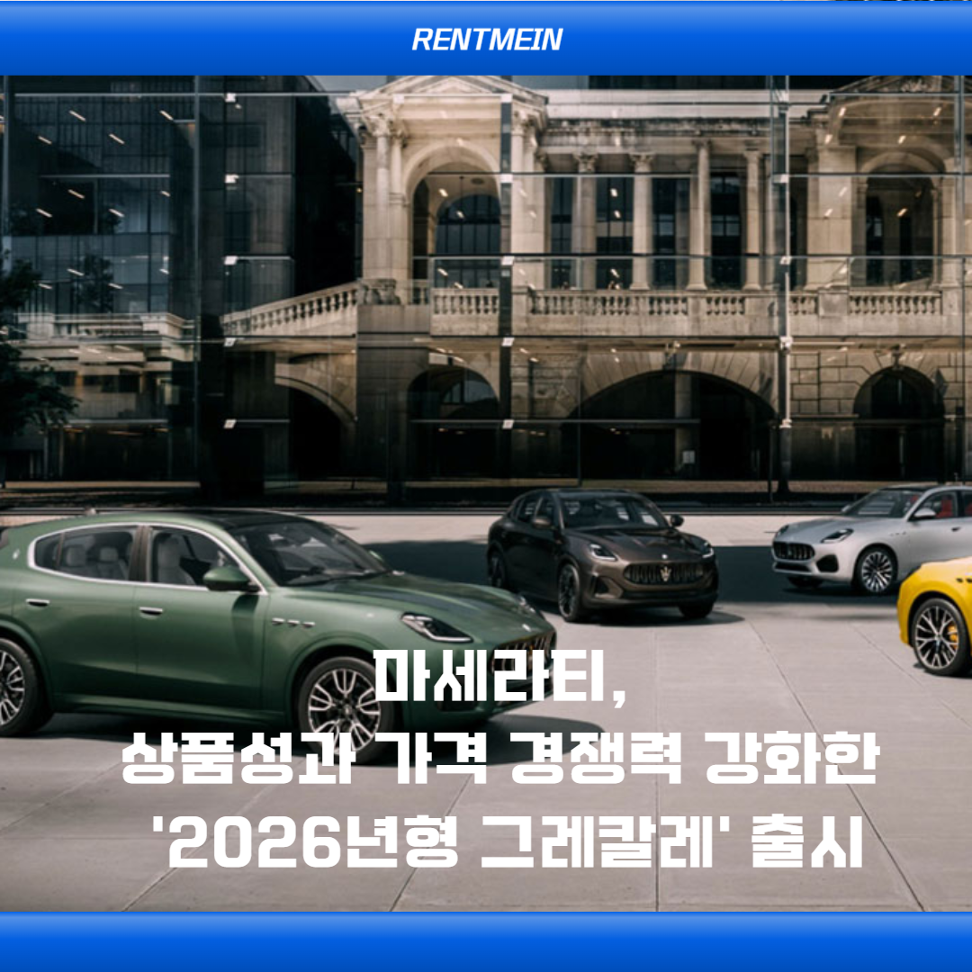 2025-10-17마세라티(Maserati)가 국내 고객을 위한 최적의 구성과 공격적인 가격 전략을 앞세운 럭셔리 SUV, 2026년형 그레칼레(Grecale)를 출시했다.2026년형 그레칼레는 국내 고객을 위해 더욱 매력적인 가격 전략을 선택한 것이 특징이다. 가격을 이전 모델 대비 최대 870만원(약 7%) 하향 조정한 2026년형 가격은 다음과 같다.- 그레칼레 트로페오(Trofeo) : 1억 6,480만 원 - 그레칼레 모데나(Modena) : 1억 1,860만 원 - 그레칼레 : 1억 1,040만 원특히 2026년형 모델부터 국내 새롭게 도입된 그레칼레 엔트리 트림은 성능 향상에 초점을 맞췄다. 기존 모델(300ps) 대비 약 10% 향상된 최고 출력 330마력(ps)을 발휘해 더 강력하고 역동적인 주행 감각을 제공한다.또한 품질에 대한 자신감을 바탕으로 차별화된 보증 및 유지보수 프로그램도 기본 혜택으로 선사한다. 2026년형 그레칼레 구매 시 5년간 주행거리 제한 없이 무상 보증(워런티) 서비스를 제공한다. 추가로 3년 유지보수 프로그램을 기본으로 포함해 차량 구매 후에도 안심하고 마세라티의 품격 있는 서비스를 누릴 수 있다.이러한 업계 최고 수준의 보증 서비스를 포함하고도 가격을 낮추고 상품성은 높였다. 강력한 V6 네튜노(Nettuno) 엔진을 탑재한 그레칼레 트로페오 트림의 경우 클라이밋 패키지(▲ 2개의 뒷좌석 외측 시트의 열선 ▲ 앞좌석 통풍 시트 ▲ 열선 스티어링 휠 ▲ 열선식 앞유리 와셔 노즐 포함)와 테크 어시스턴트 패키지(▲ 헤드업 디스플레이 ▲ 적외선 차단 윈드쉴드 ▲ 무선 충전 ▲ 웨어러블 키 포함)를 기본 제공한다. 마일드 하이브리드 시스템을 탑재한 그레칼레 모데나 트림에는 옵션으로 적용되던 ▲ 파노라마 선루프 ▲ 클라이밋 패키지 ▲ 무선 충전기가 2026년형부터 기본 사양으로 추가됐다.이 밖에도 디자인, 사운드, 공간, 주행성능 등 럭셔리 SUV 가 갖춰야 할 요소를 충족시키는 마세라티 그레칼레는 넉넉한 휠베이스(2,901mm)와 전고(1,659mm) 덕분에 동급 최대의 실내공간을 확보, 장거리 이동 시에도 편안함을 선사한다. 적재 공간 또한 535~570L로 실용적이다. 여기에 마세라티 특유의 강렬한 엔진음과 소너스 파베르(Sonus faber) 하이엔드 오디오 시스템으로 몰입감 넘치는 드라이빙 경험을 제공한다.다카유키 기무라(Takayuki Kimura) 마세라티 코리아 총괄은 “더 많은 국내 고객들이 이탈리안 럭셔리 SUV를 경험하실 수 있도록 보다 높은 상품성과 경쟁력 있는 가격으로 2026년형 그레칼레를 출시하게 됐다”며 “나만의 취향과 품격으로 새로운 SUV를 선택하고자 하는 많은 고객들이 마세라티 그레칼레가 선사하는 특별한 일상을 즐길 수 있는 기회가 되길 바란다”고 전했다. -